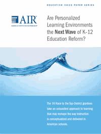 Are Personalized Learning Environments the Next Wave of K-12 Education Reform?is the first issue paper in a new series from American Institutes for Research. This issue paper examines 16 successful applications from the first round of Race to the Top District awards and identifies trends and lessons learned from these pioneering grantees’ efforts to implement and scale teaching and learning innovations.