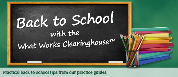 As summer winds down and the classroom heats up, turn to practice guides from the What Works Clearinghouse™ (WWC) for practical back-to-school teaching tips. The What Works Clearinghouse is part of the Institute of Educational Sciences and is recognized as a practical and reliable source for research-backed best teaching practices.